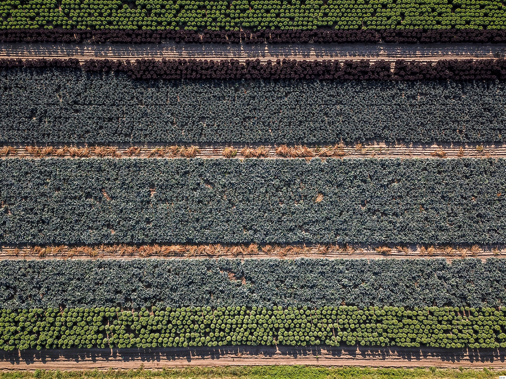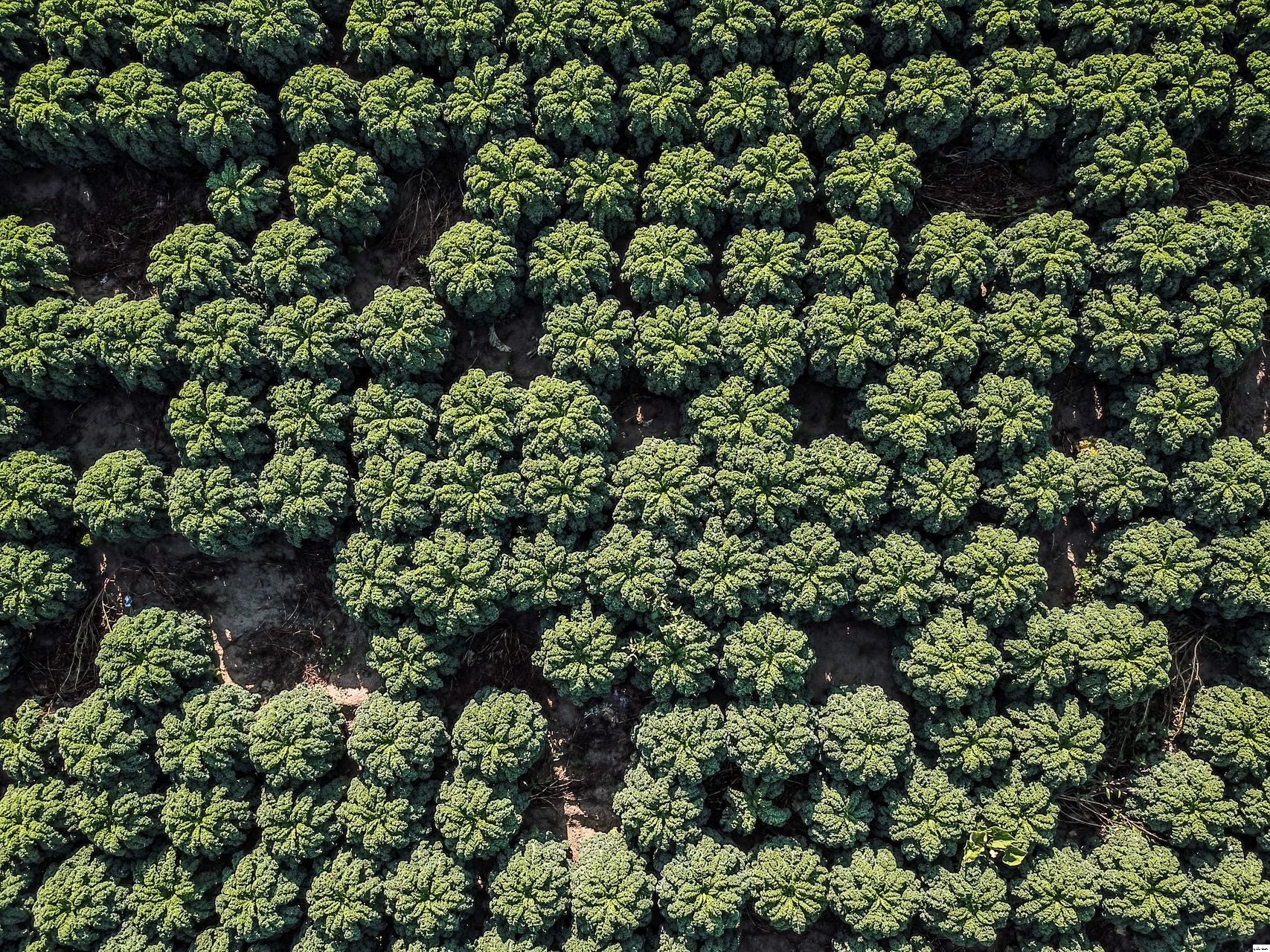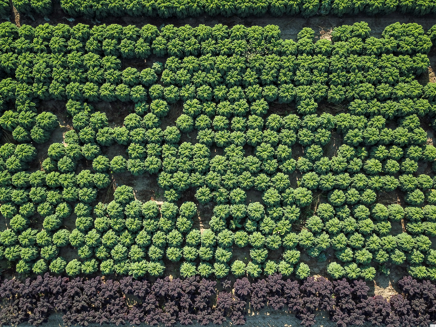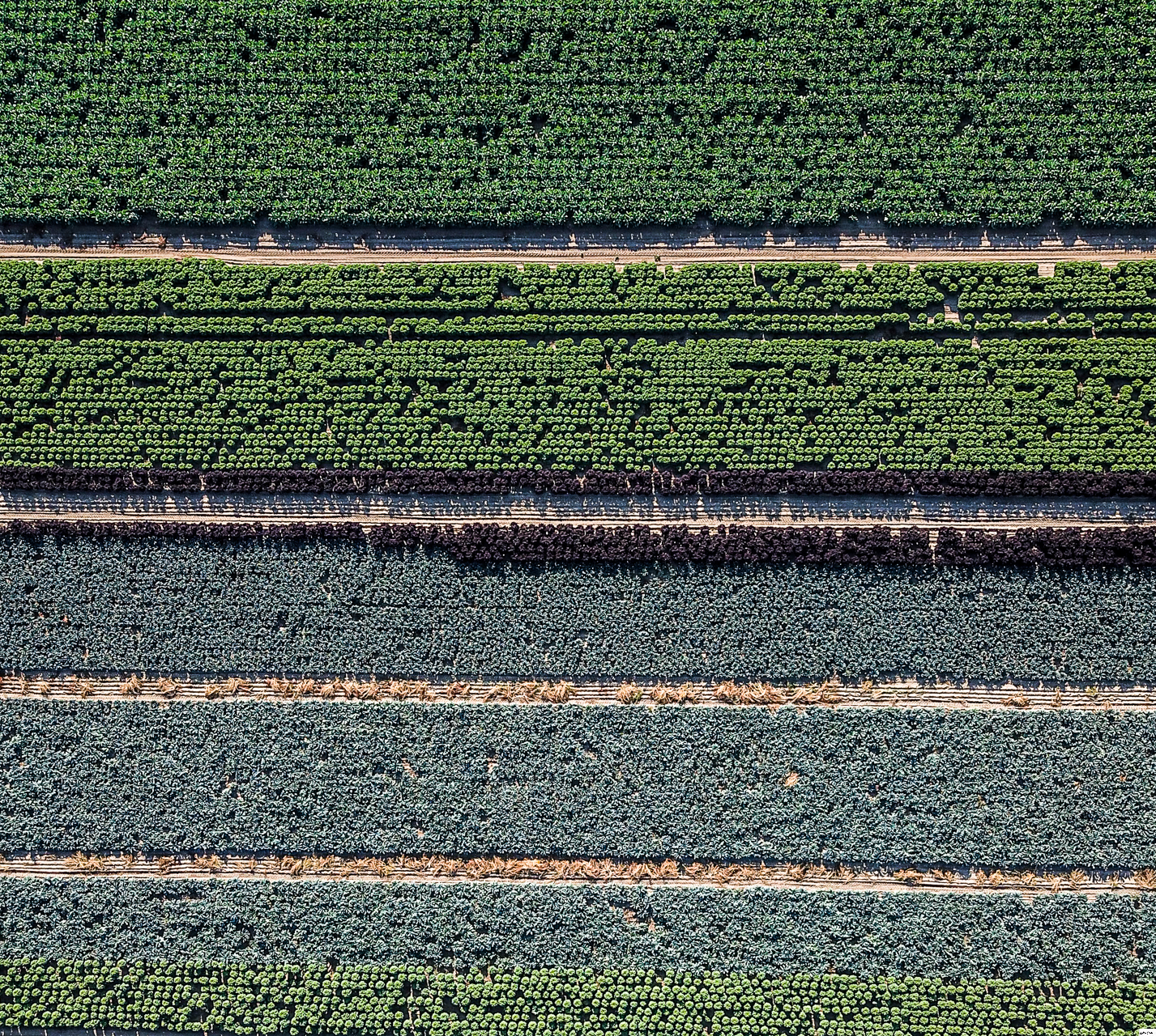 Rows of different brassicas growing in the deep silt fens.