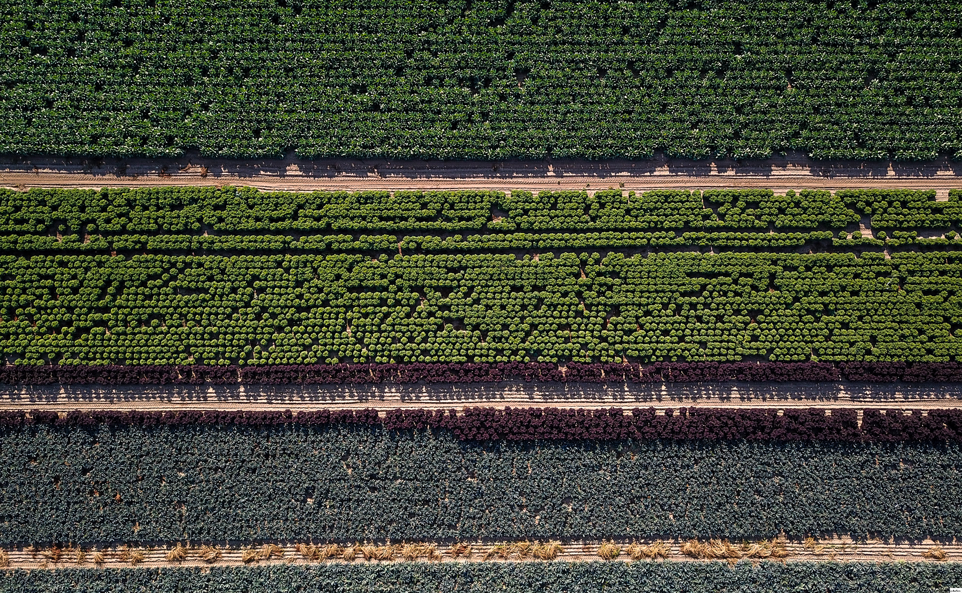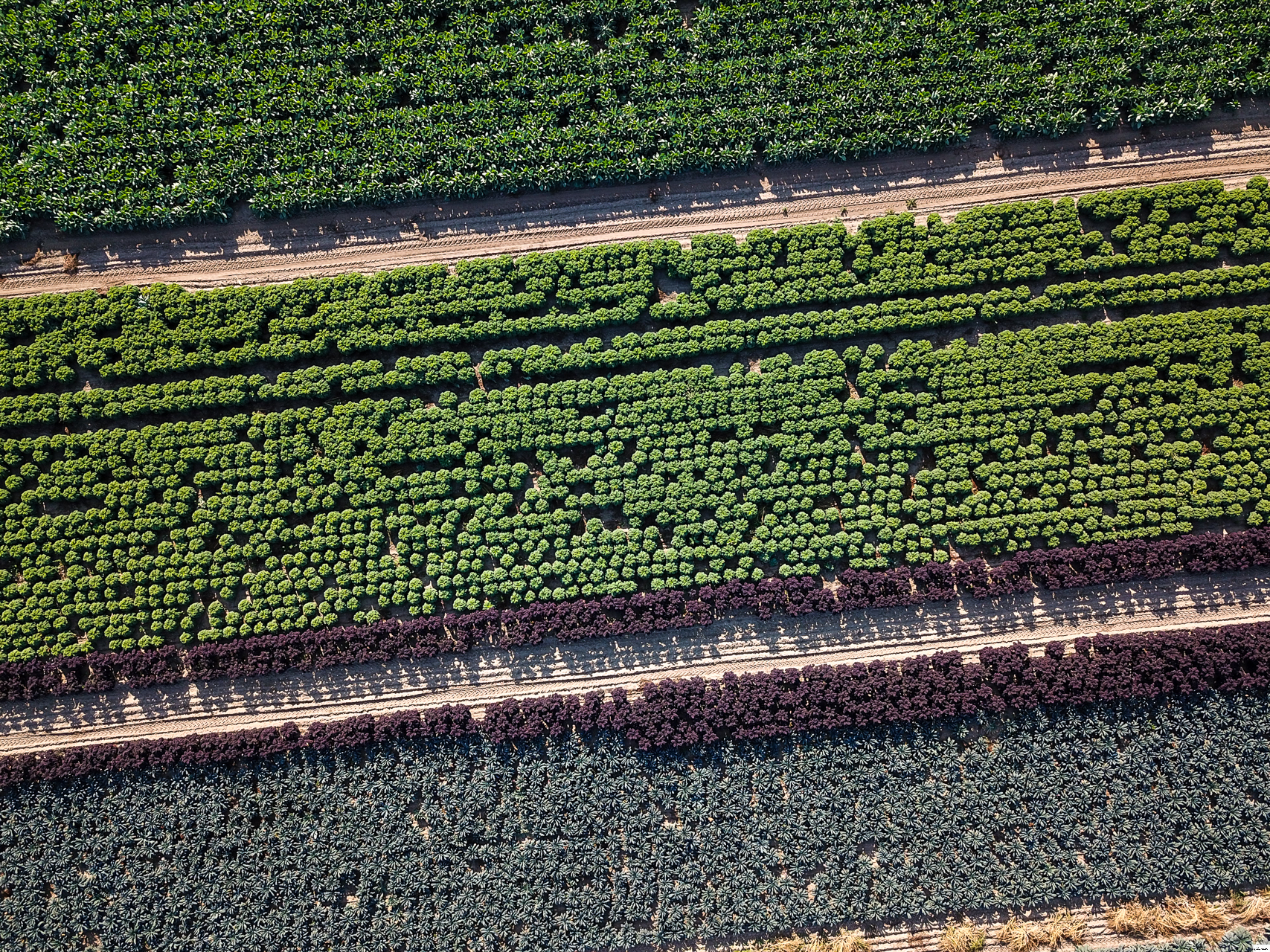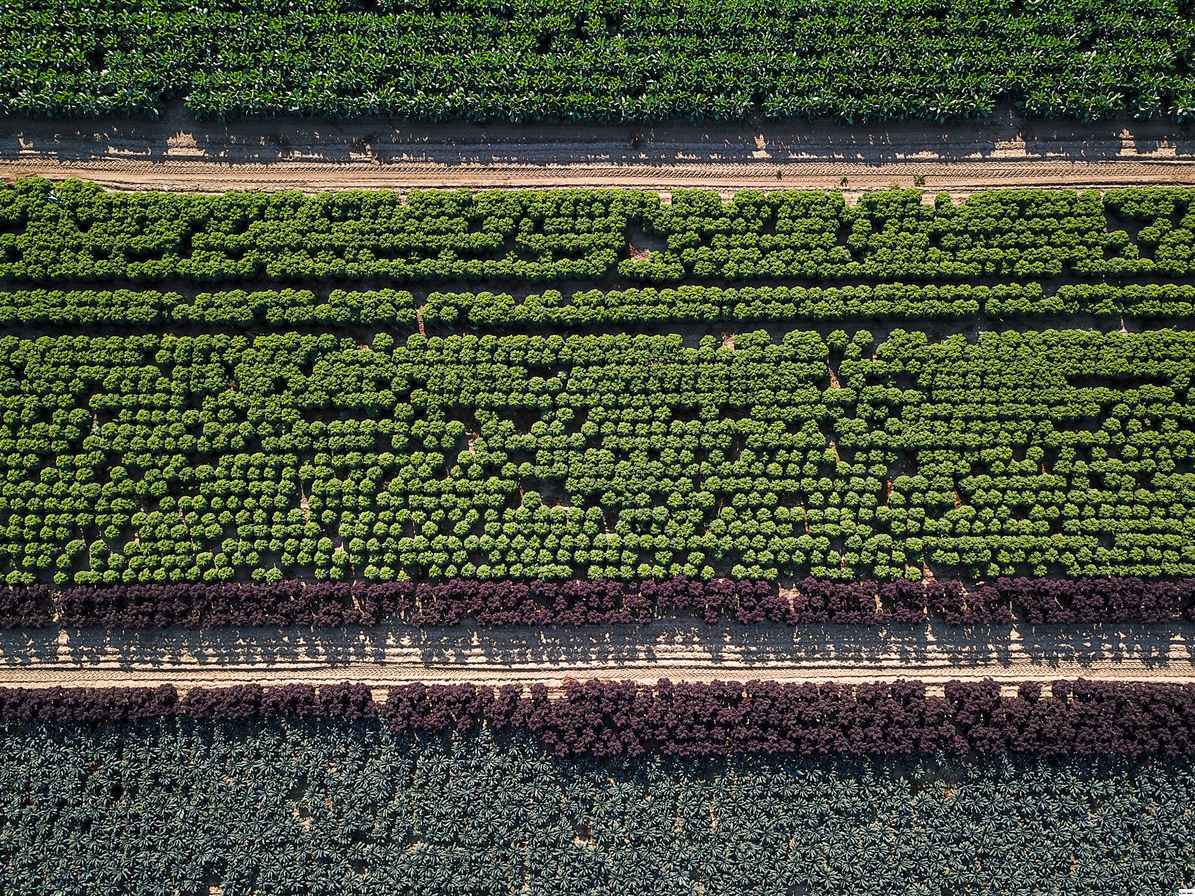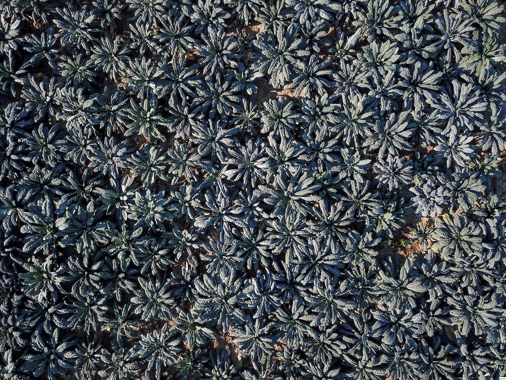 Rows of different brassicas growing in the deep silt fens.
