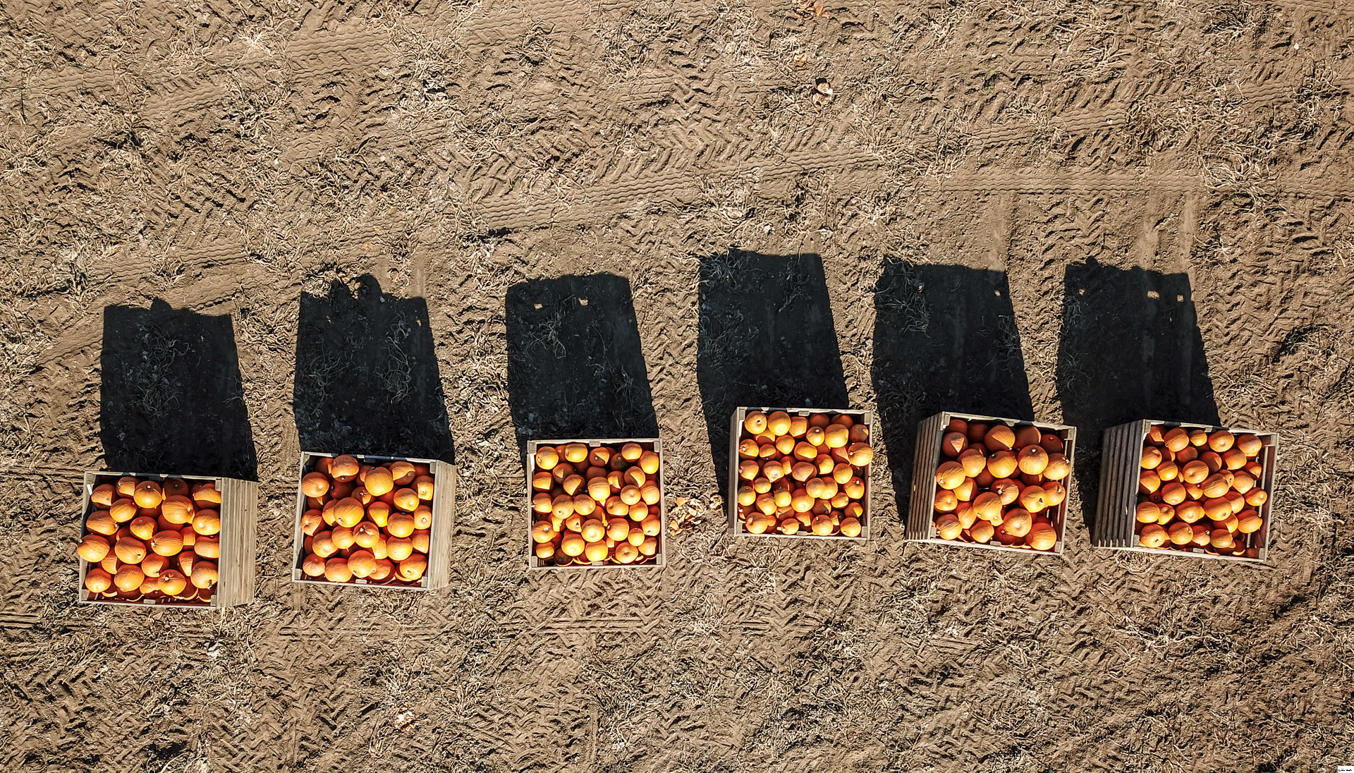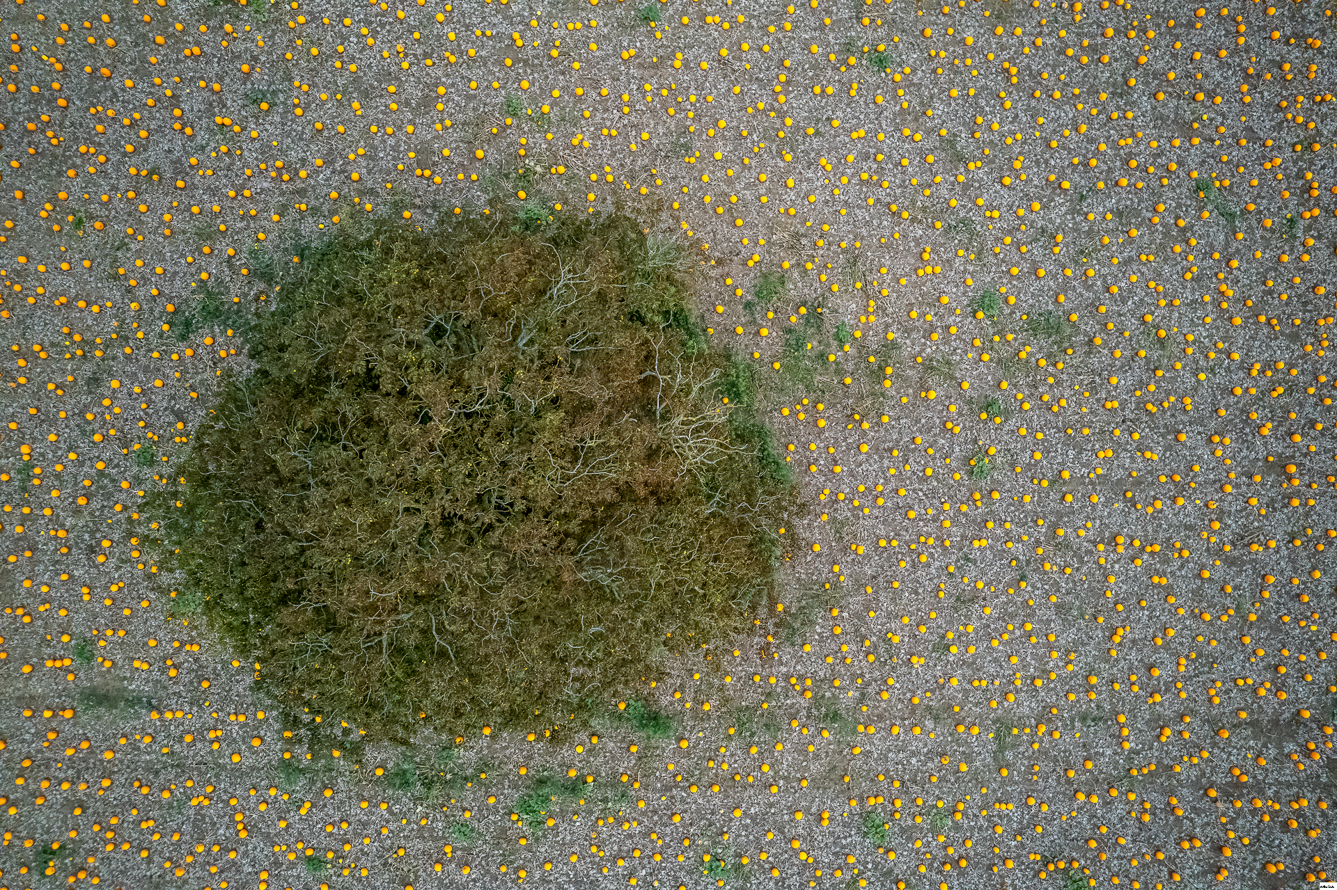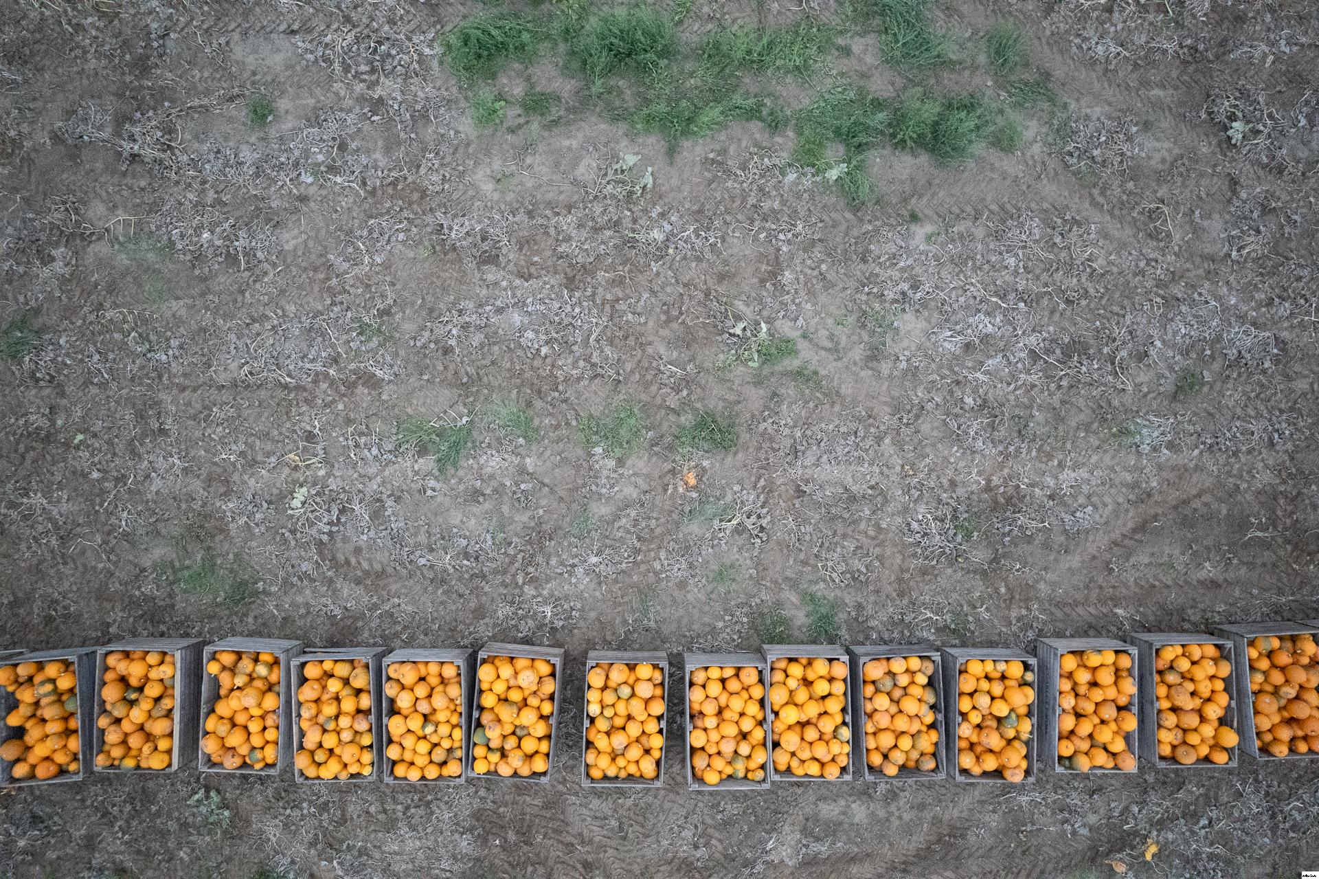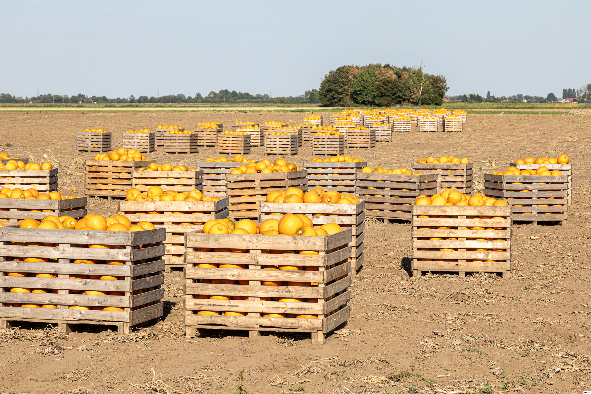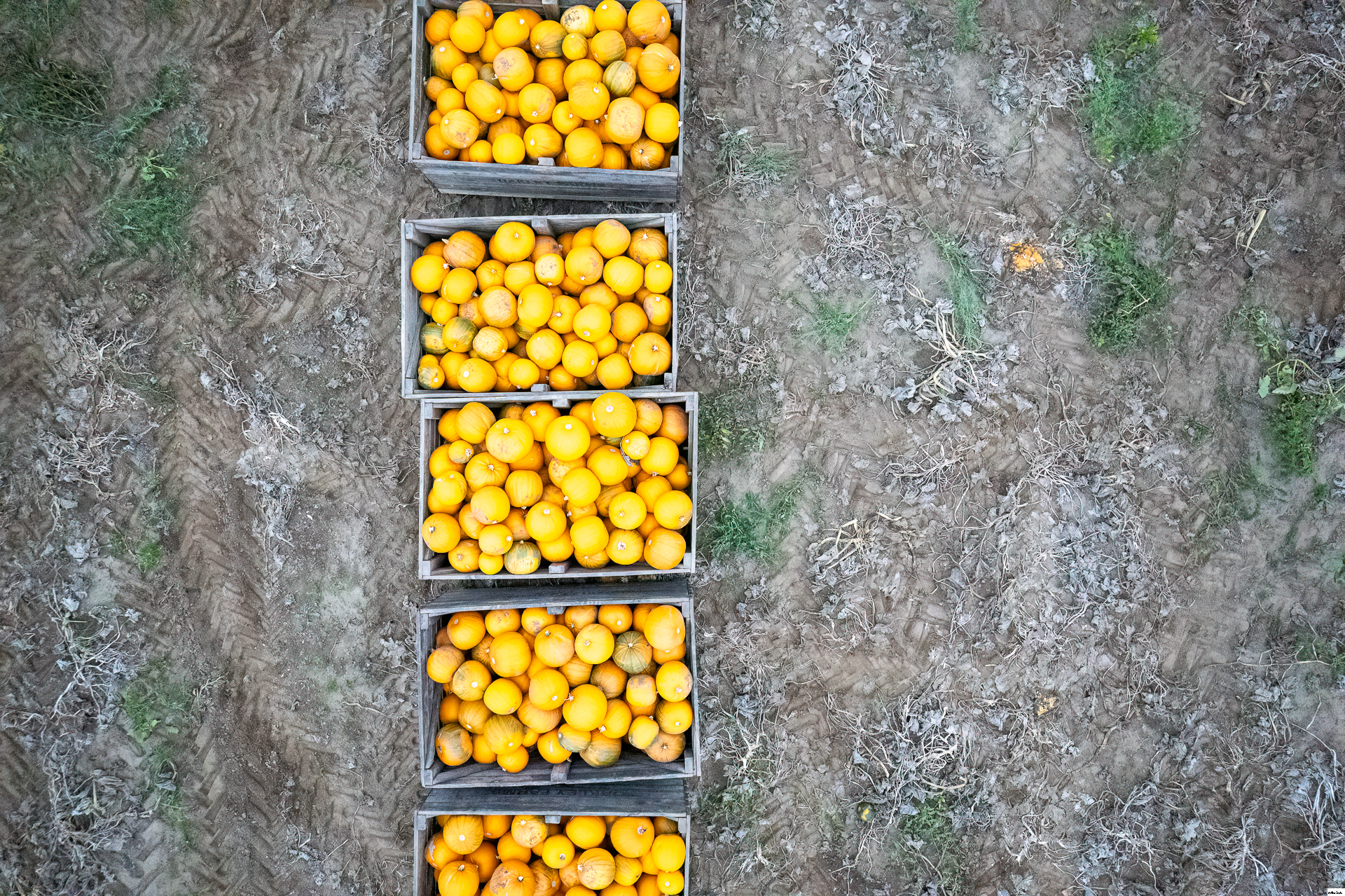 From above, every unharvested field of pumpkins looks different. And it depends on many things – the colour of the soil, how ripe the crop is, whether the plants’ leaves have withered, how many plants didn’t survive to adulthood, the quality of the light on that day etc.