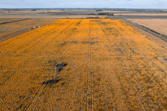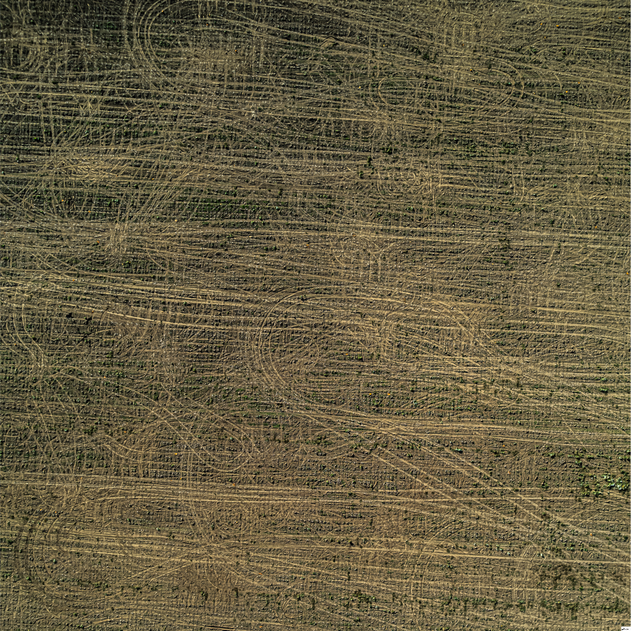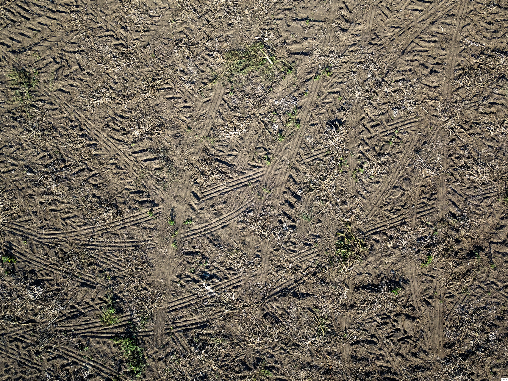 After the harvest, the ground is covered with wonderful patterns of tyre tracks.