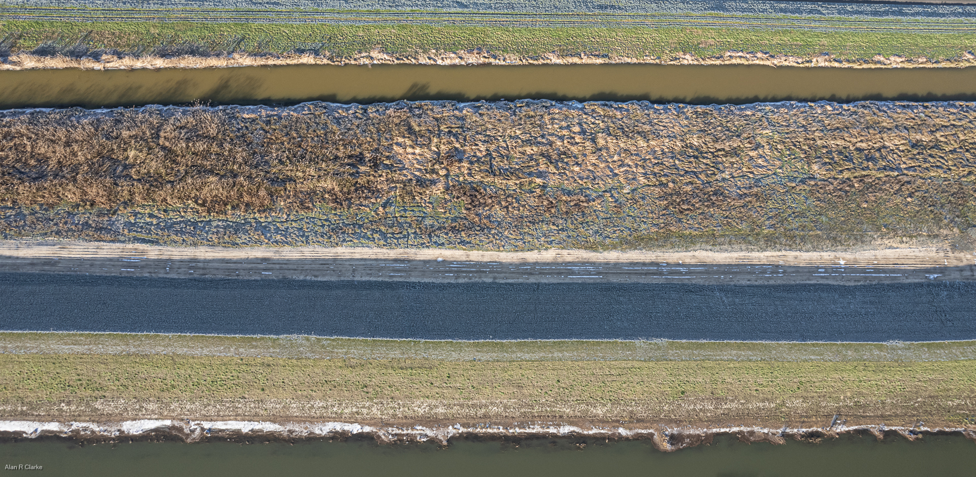 Sandwiches! 2025-11-142025-11-18 I love to find lots of (approximately) parallel bands of varying colour and texture in the landscape. A camera club colleague calls these my “sandwich pictures”. The Fens have many, many parallel lines!