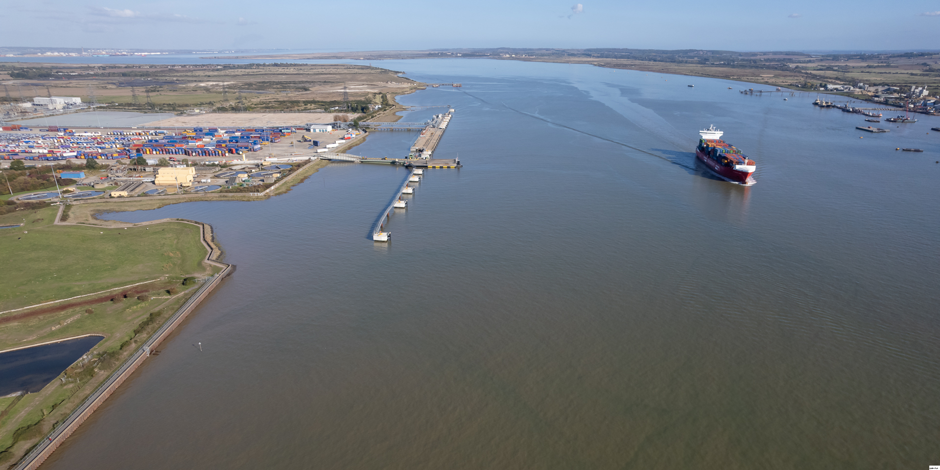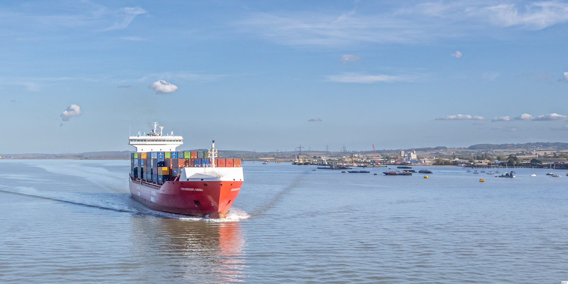 The Containerships Aurora just happened to be passing. It is designed to transport small loads of containers between major ports. It is LPG-powered, and can also connect to port electrical supplies, to minimise emissions while docked.