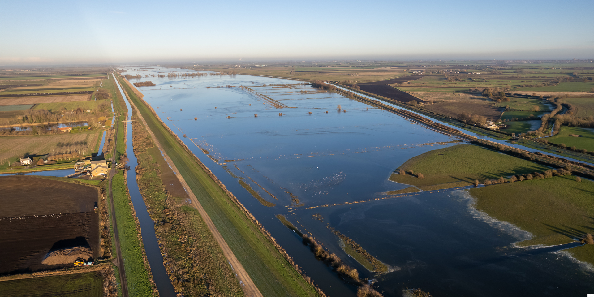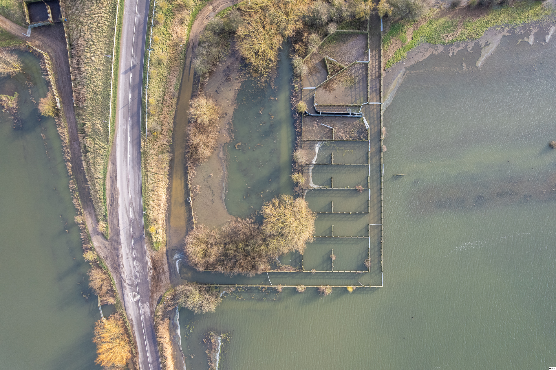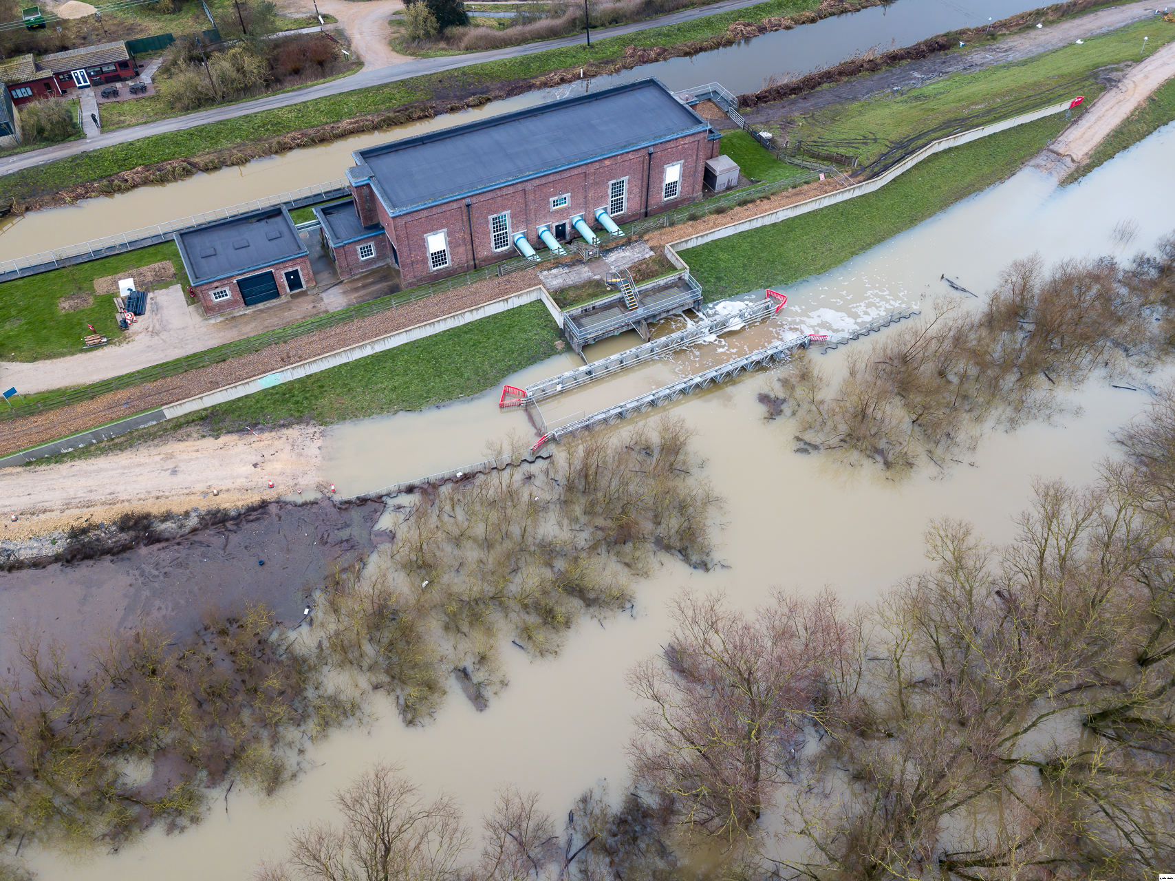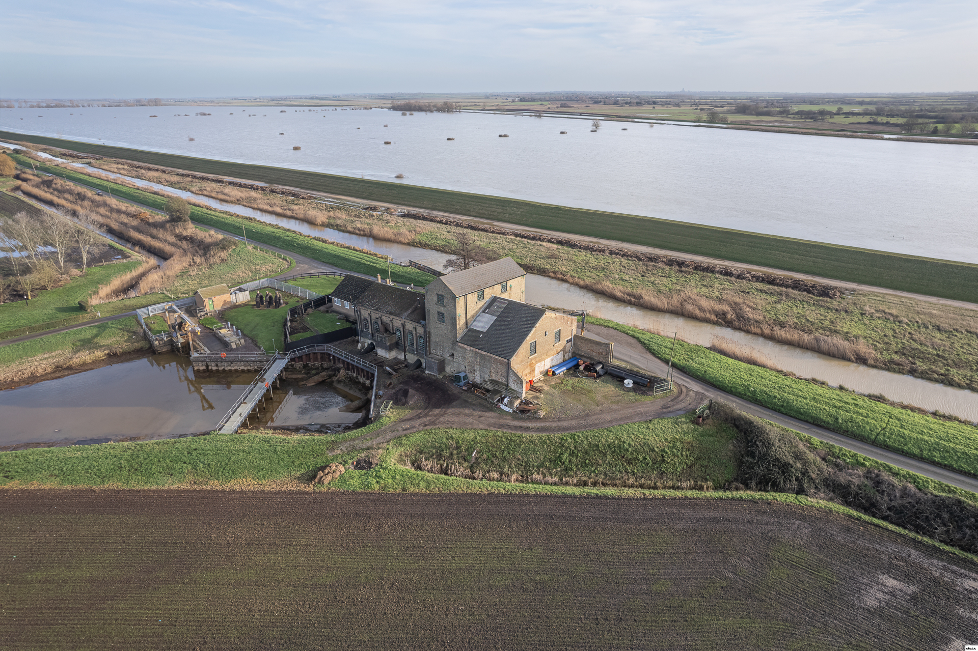 First windmills, then steam engines, and finally diesel engines pumped water into them from the deep dykes and drains criss-crossing the reclaimed land. But in winter, even these rivers could not move water fast enough to keep the low fens from being submerged. The land between them – the Ouse Washes – was grazed by cattle in summer, but in winter it became a huge reservoir, flooded deliberately.