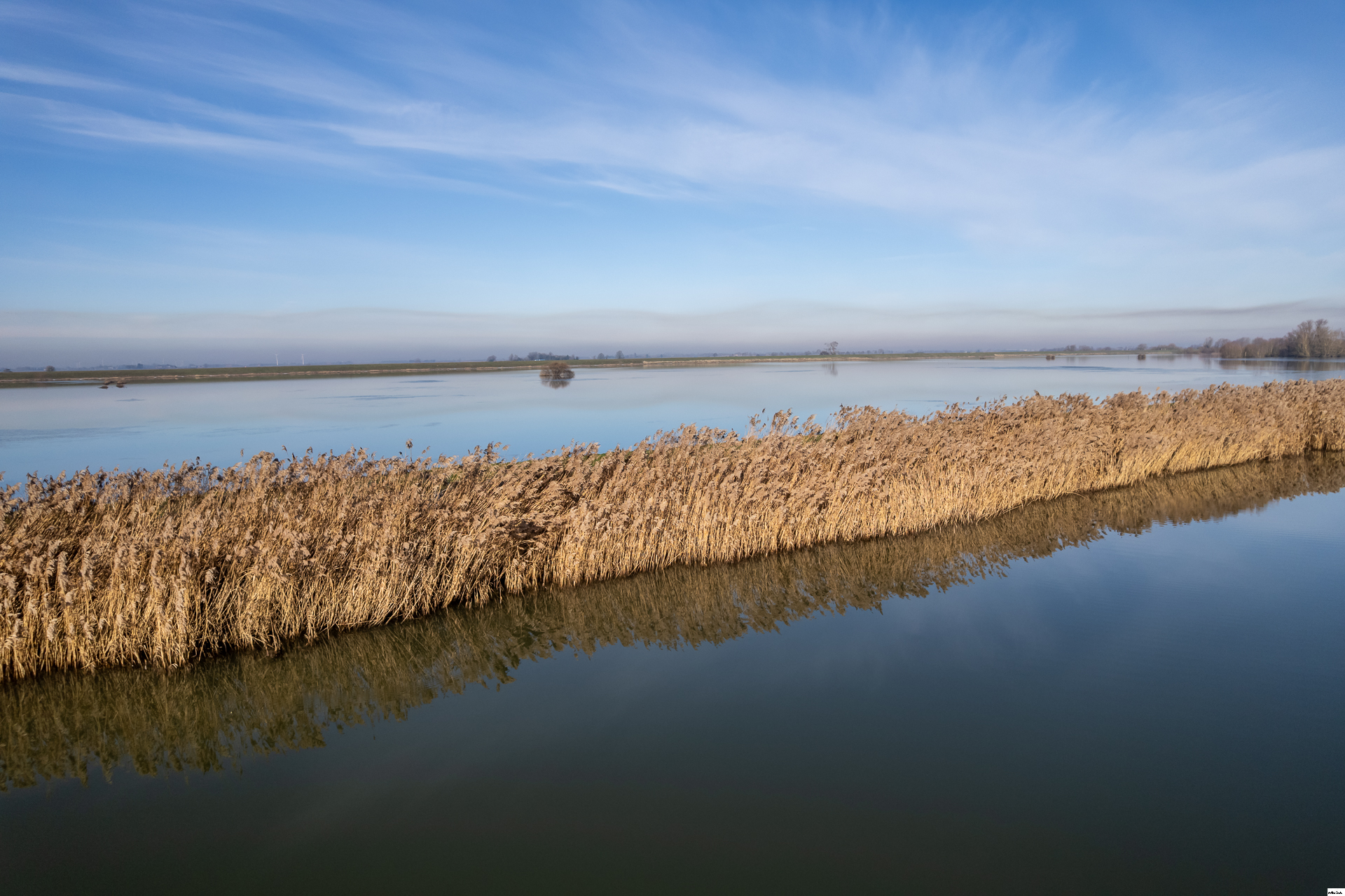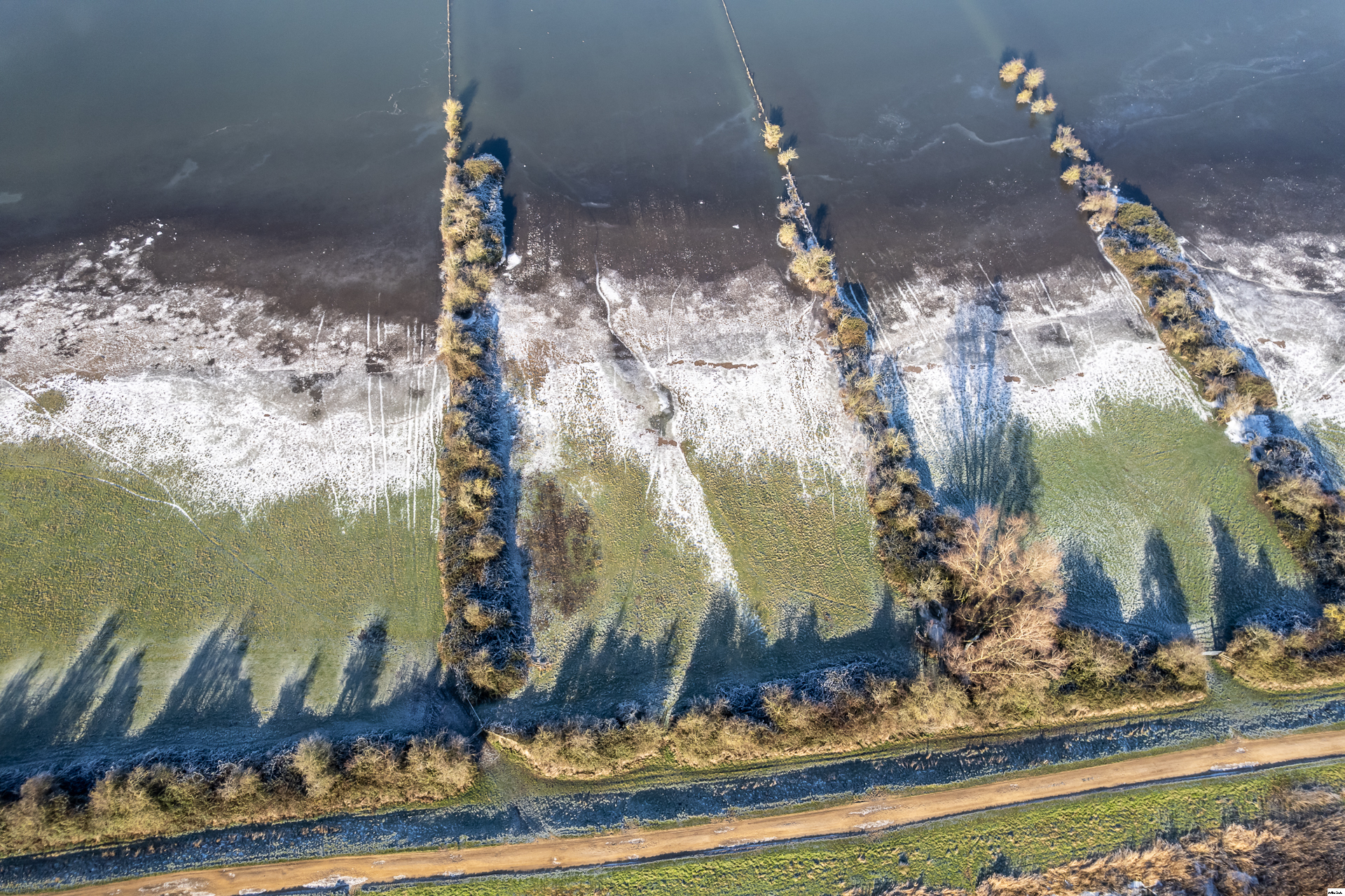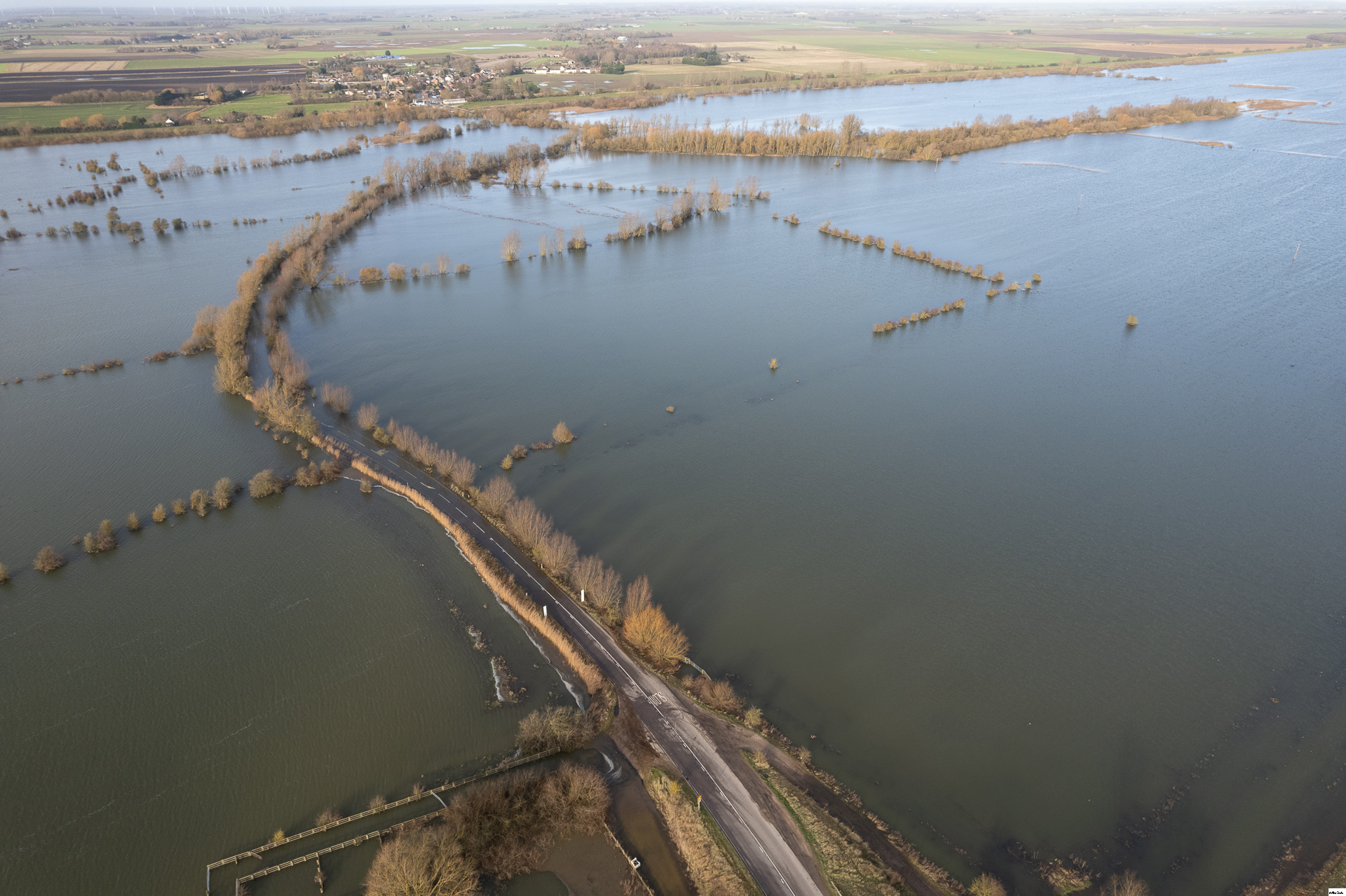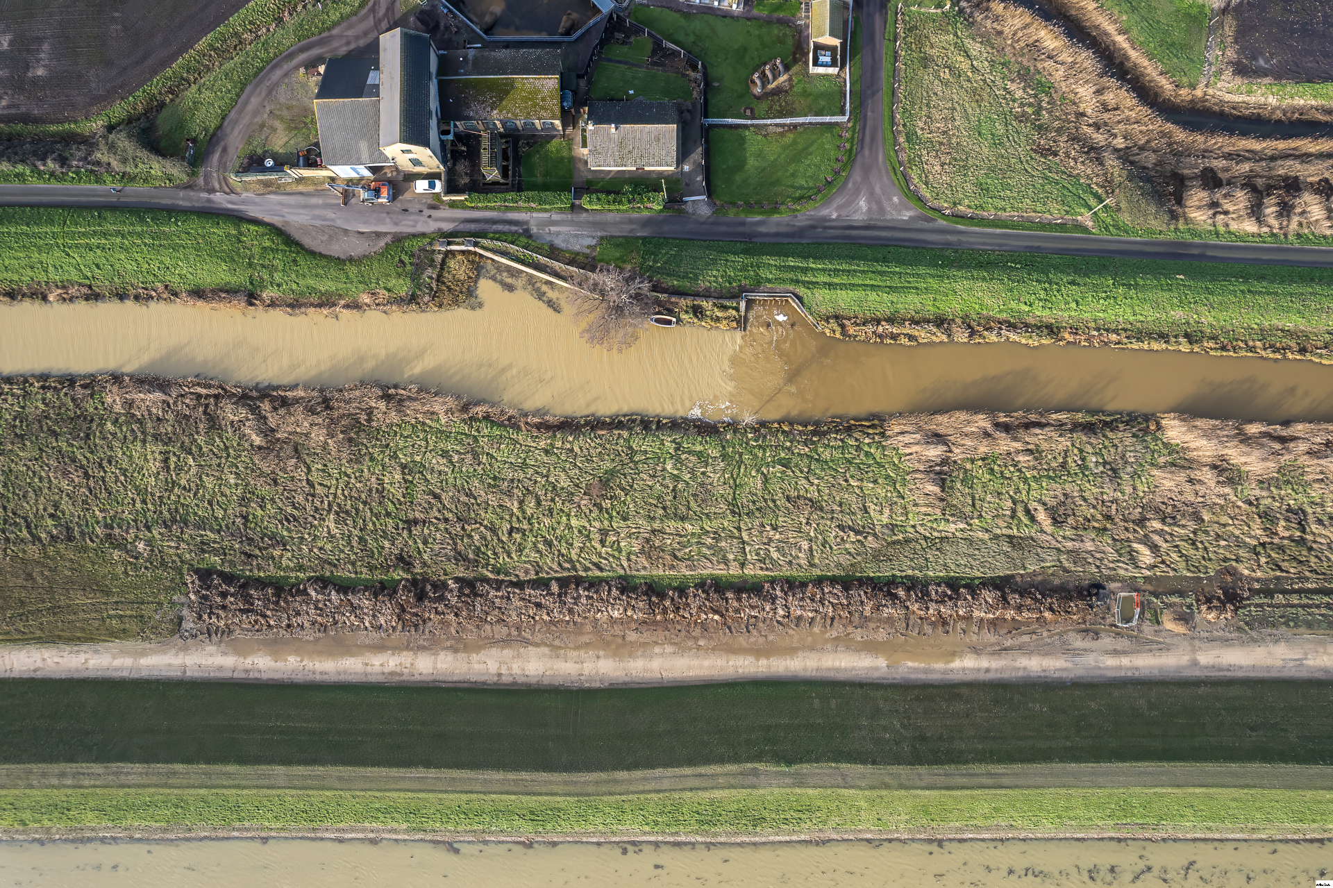 First windmills, then steam engines, and finally diesel engines pumped water into them from the deep dykes and drains criss-crossing the reclaimed land. But in winter, even these rivers could not move water fast enough to keep the low fens from being submerged. The land between them – the Ouse Washes – was grazed by cattle in summer, but in winter it became a huge reservoir, flooded deliberately.
