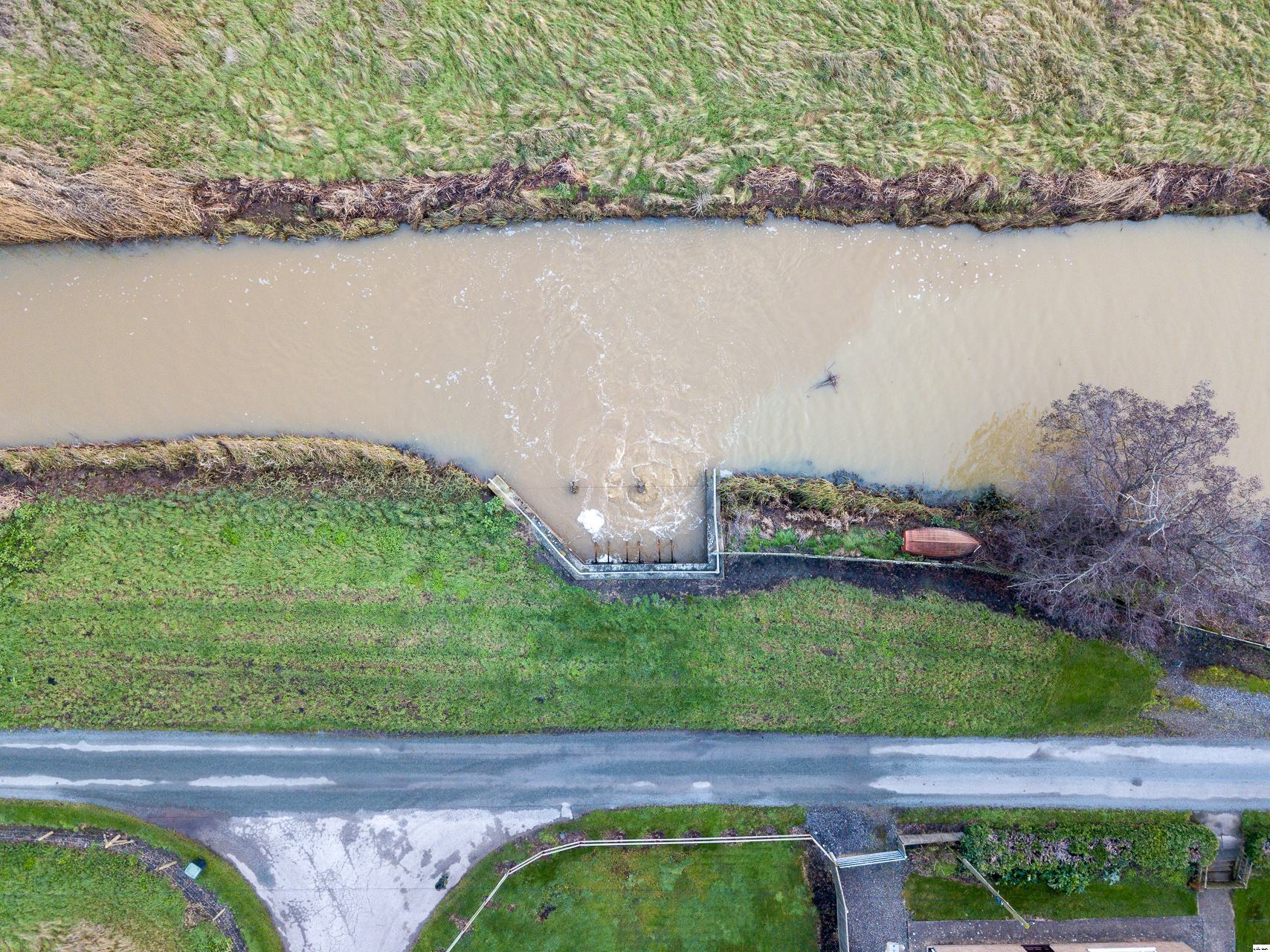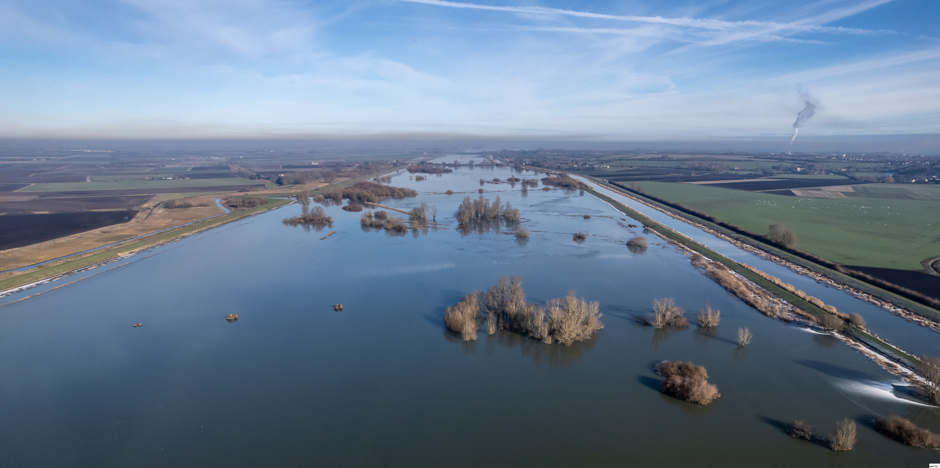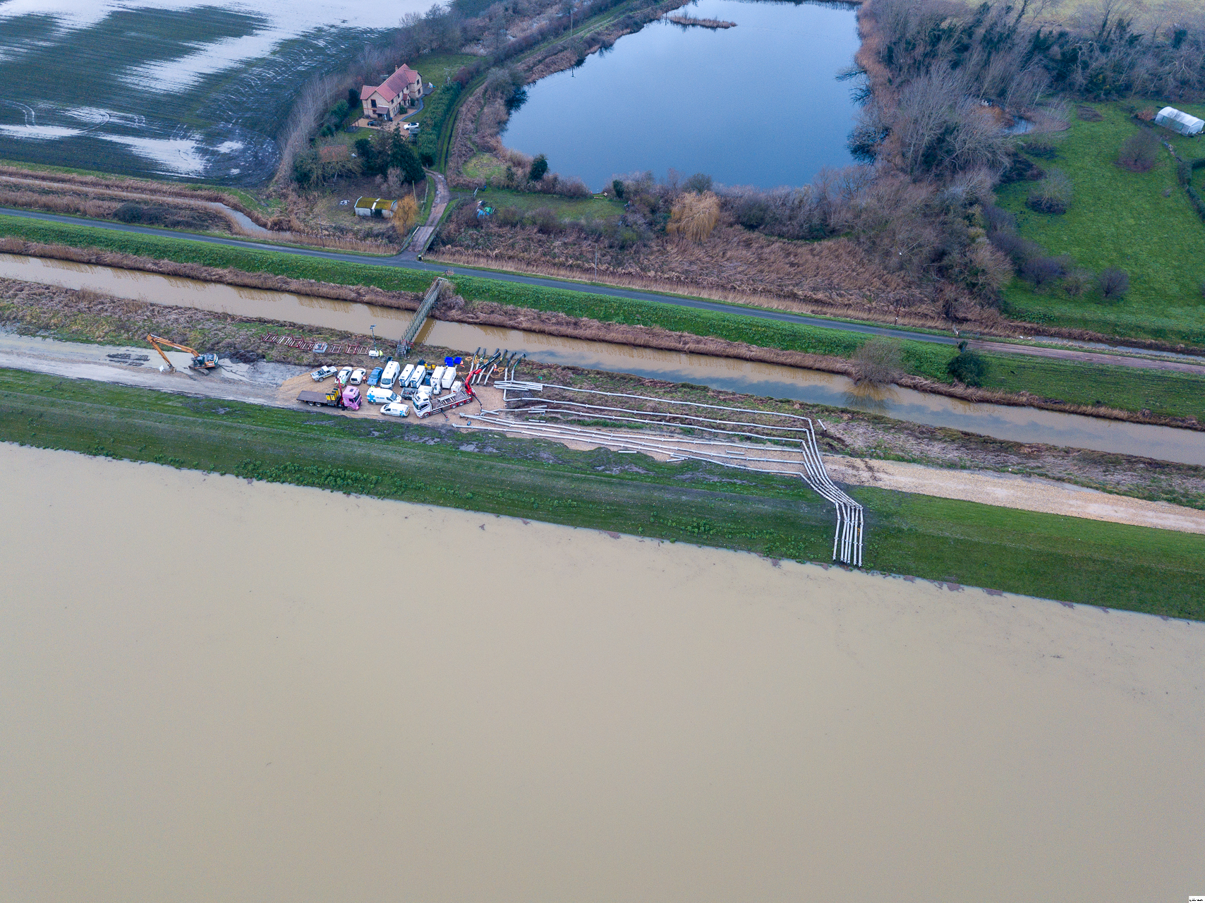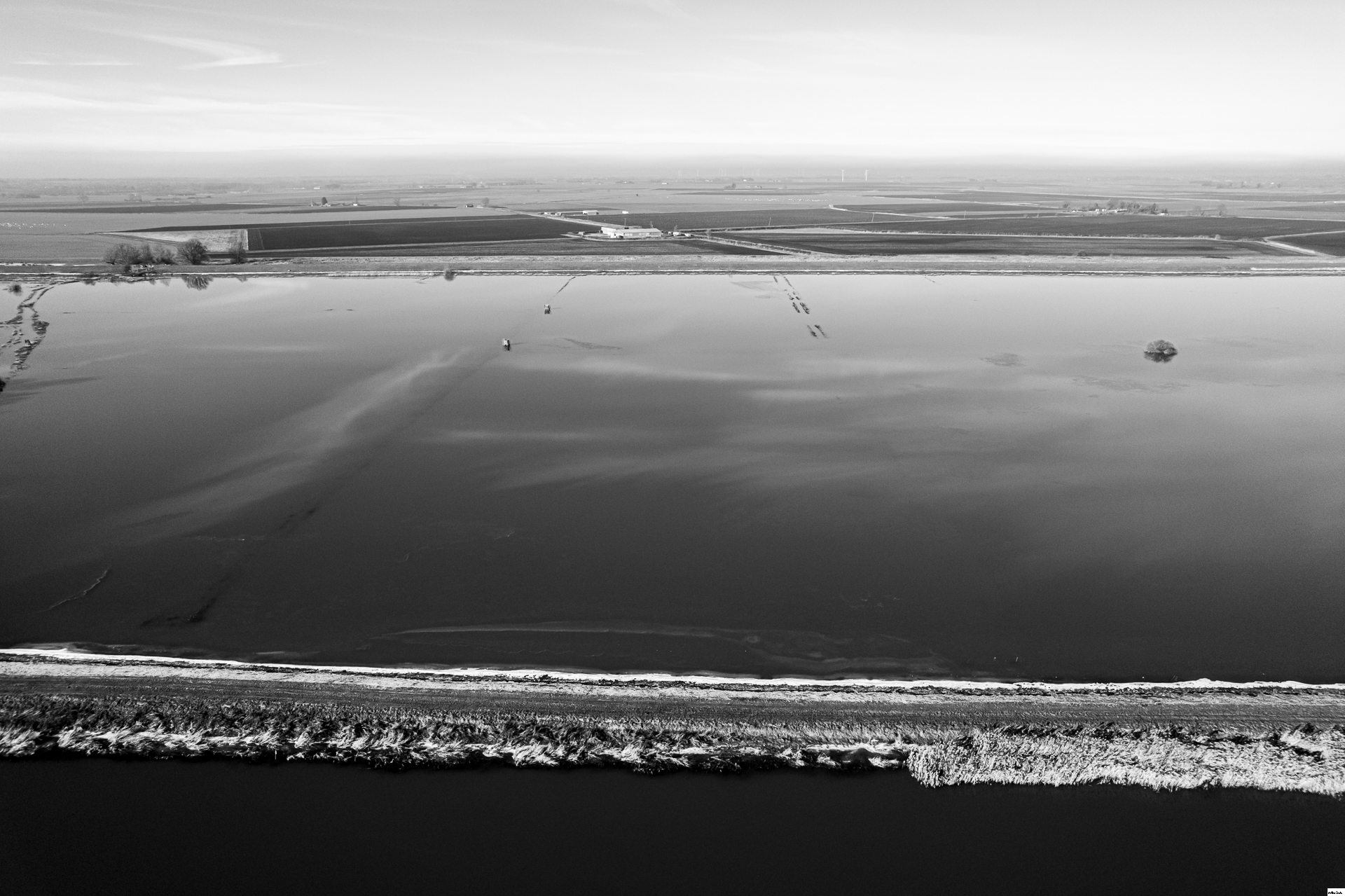 First windmills, then steam engines, and finally diesel engines pumped water into them from the deep dykes and drains criss-crossing the reclaimed land. But in winter, even these rivers could not move water fast enough to keep the low fens from being submerged. The land between them – the Ouse Washes – was grazed by cattle in summer, but in winter it became a huge reservoir, flooded deliberately.