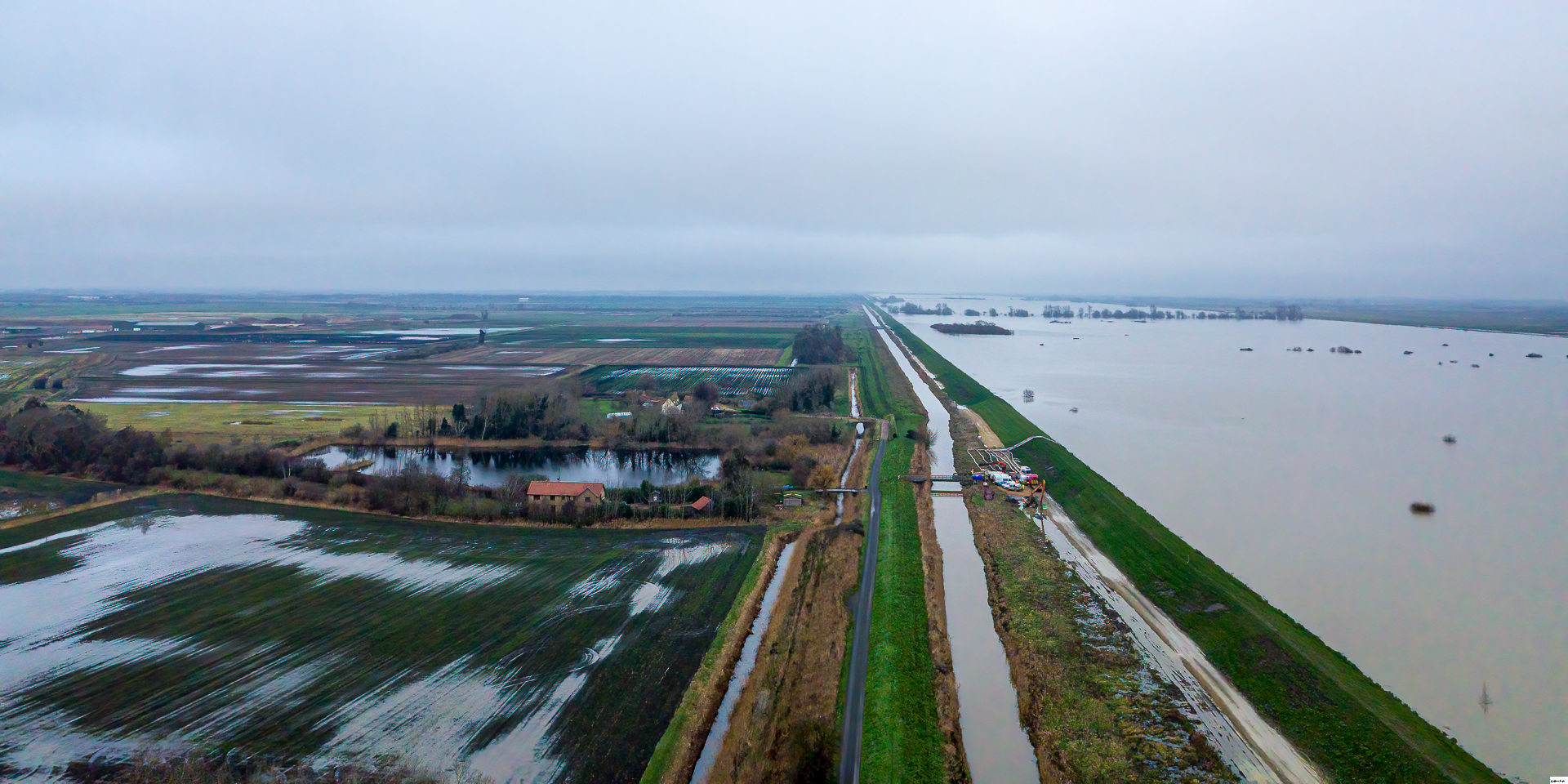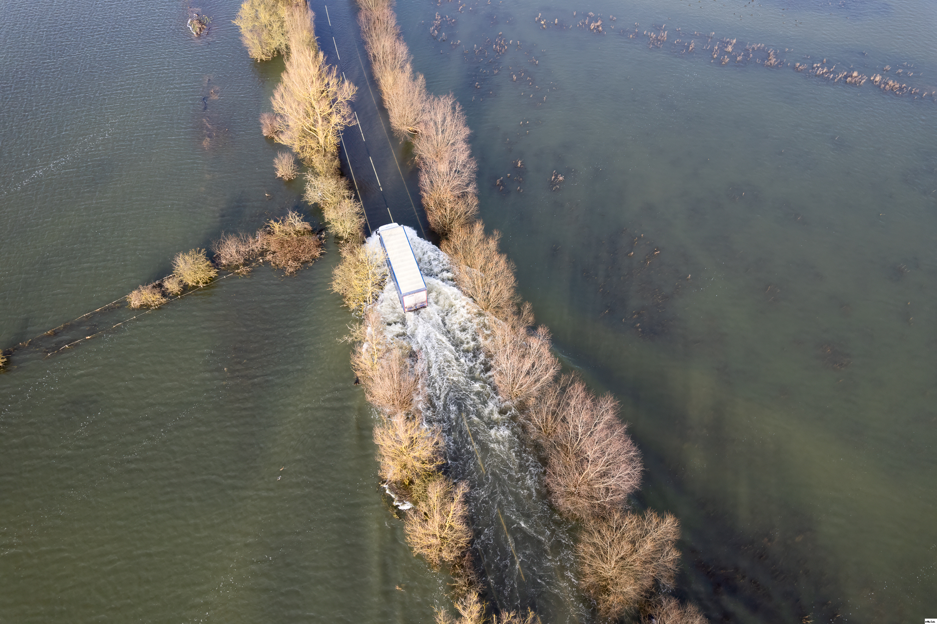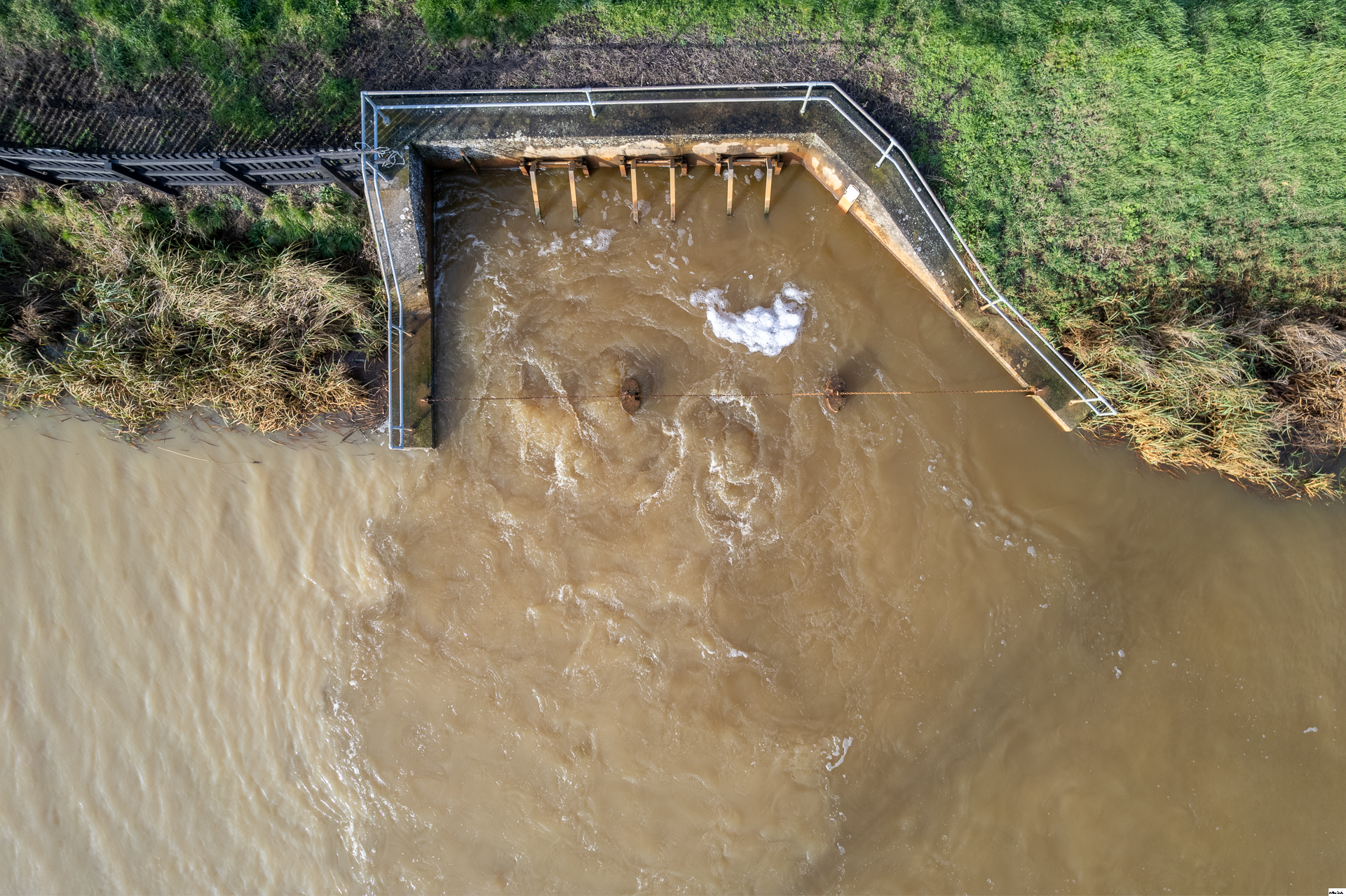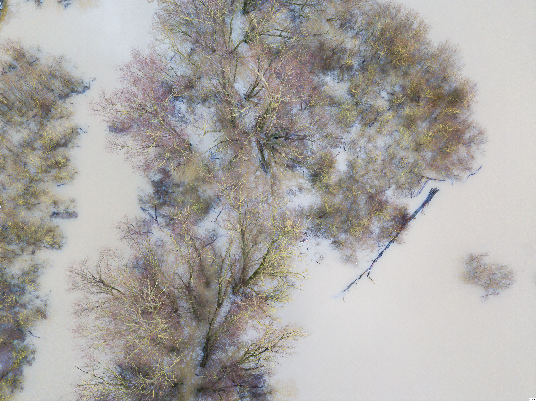 First windmills, then steam engines, and finally diesel engines pumped water into them from the deep dykes and drains criss-crossing the reclaimed land. But in winter, even these rivers could not move water fast enough to keep the low fens from being submerged. The land between them – the Ouse Washes – was grazed by cattle in summer, but in winter it became a huge reservoir, flooded deliberately.